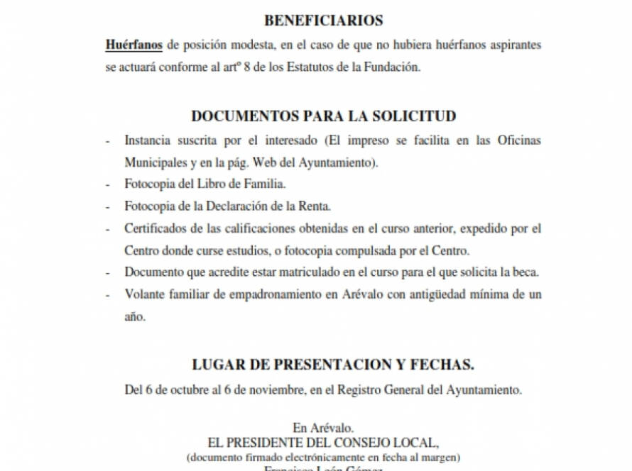 Anuncio de convocatoria de becas de la Fundación «Valcarce Maestro»